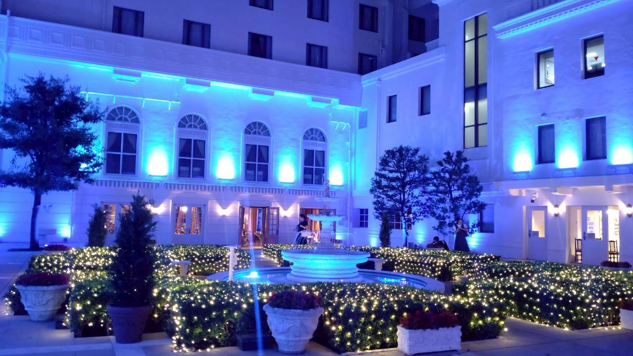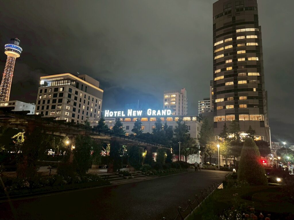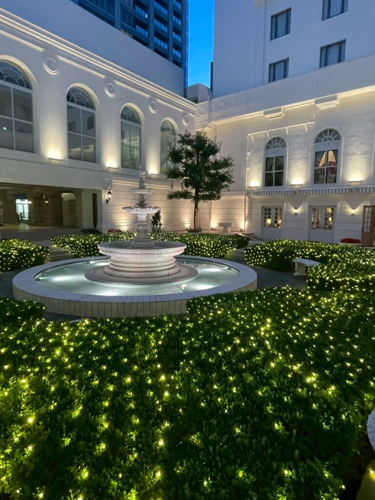 横浜市認定歴史的建造物であるホテルニューグランド本館中庭の工事が終わり、2025年8月末からライトアップが始まりました!