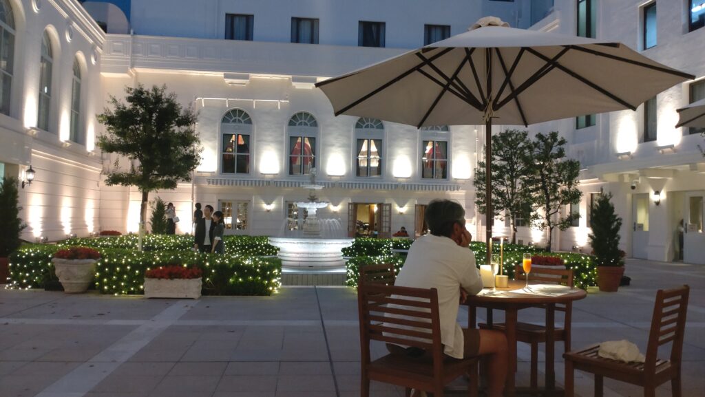 レストランは18時に予約していたので、それまで中庭を楽しみました。